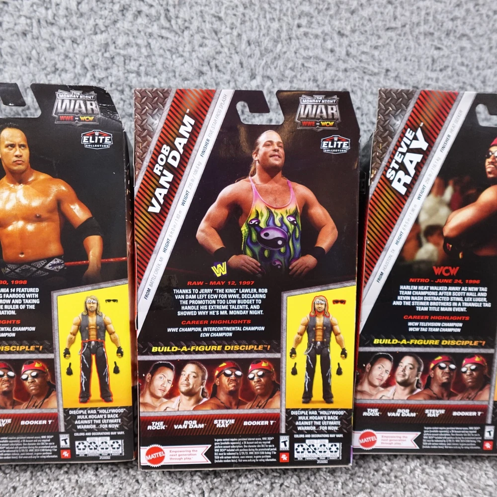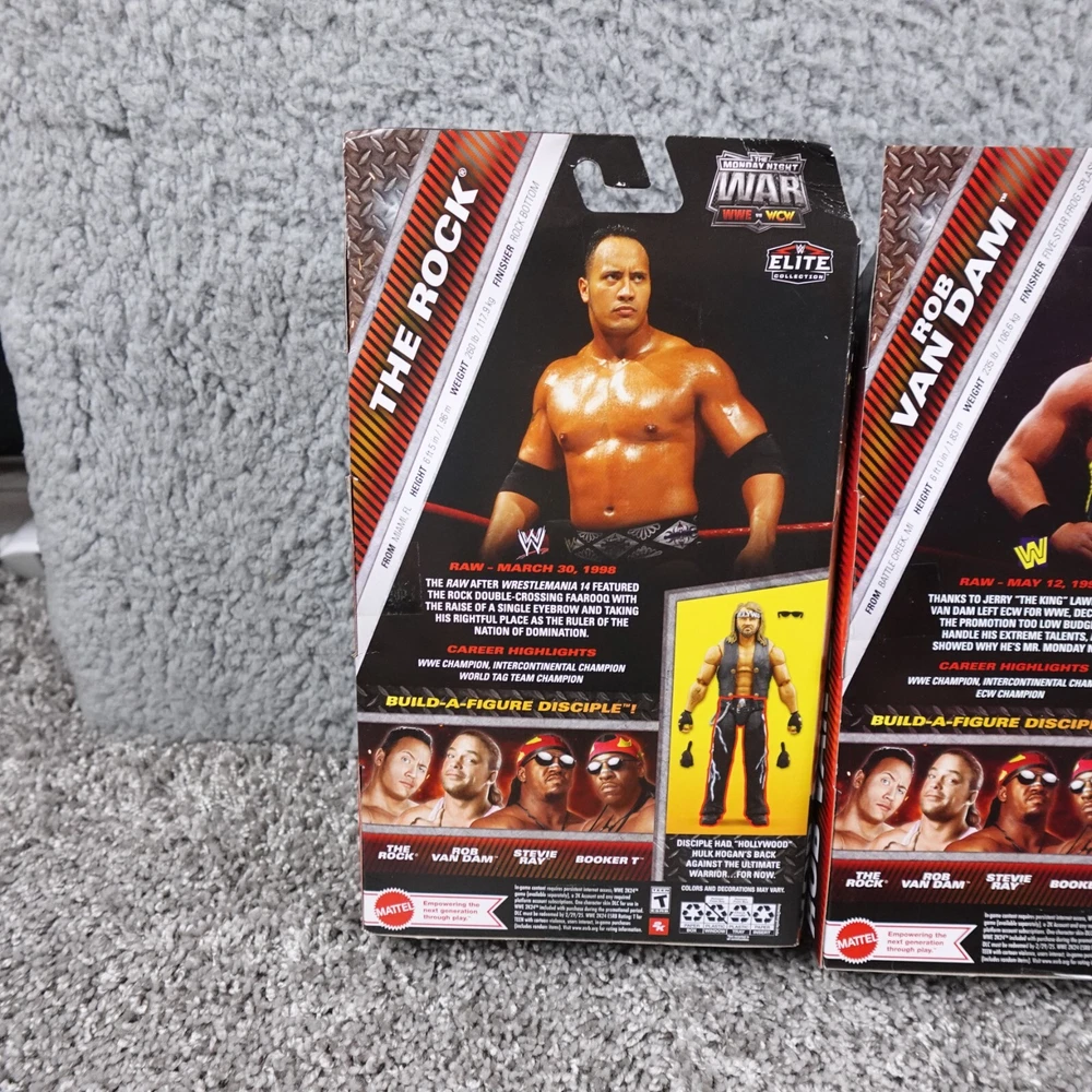 Up for sale is a beautiful complete wwe set figures, please review all photos Items are packed same day or next day for fast shipping (weekends excluded). Please feel to reach out with any questions, all questions answered promptly. Thank you! rock figure does show crease see photos