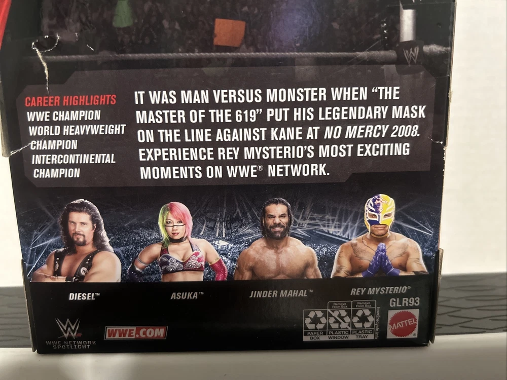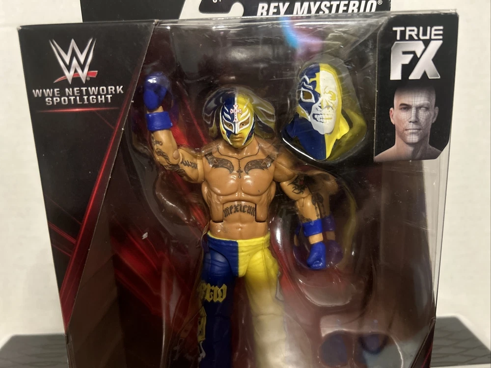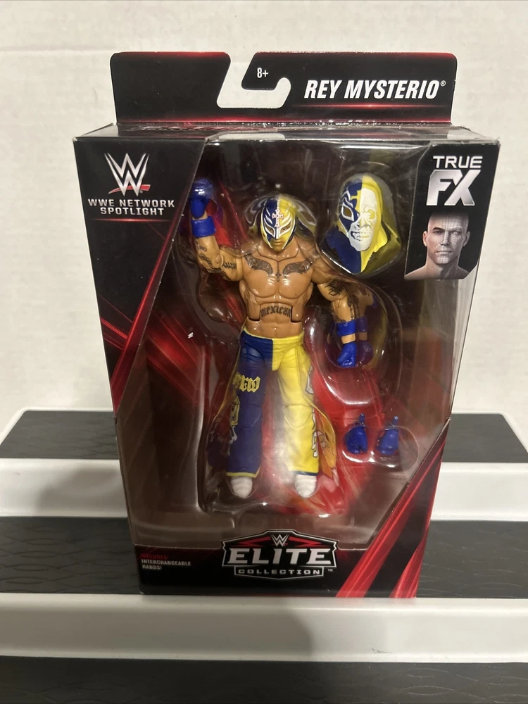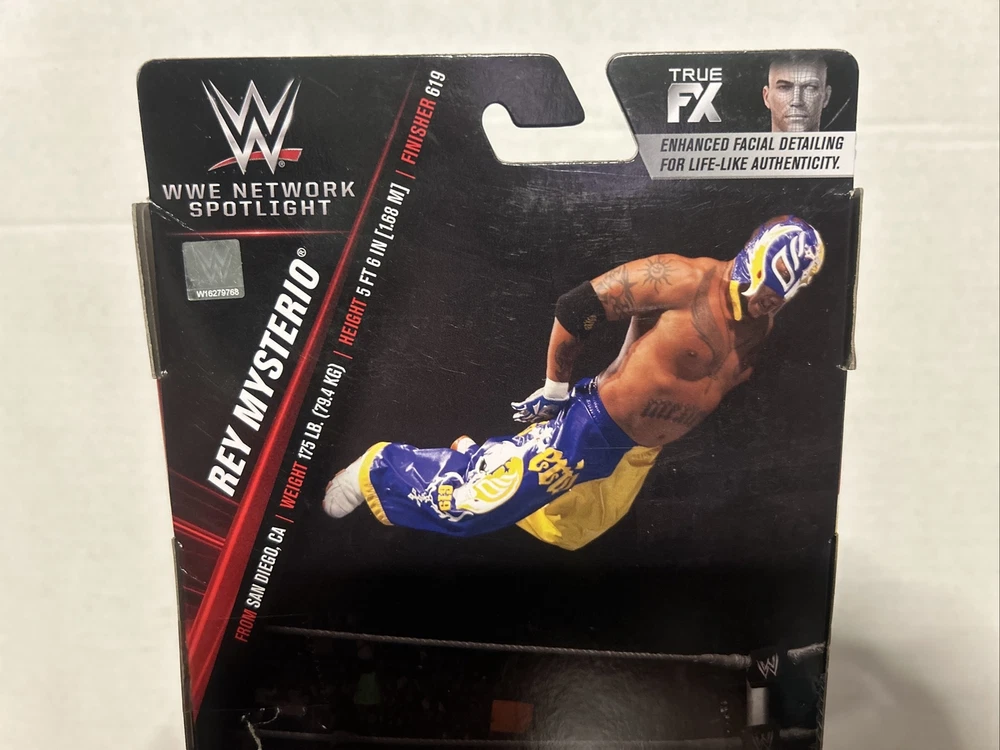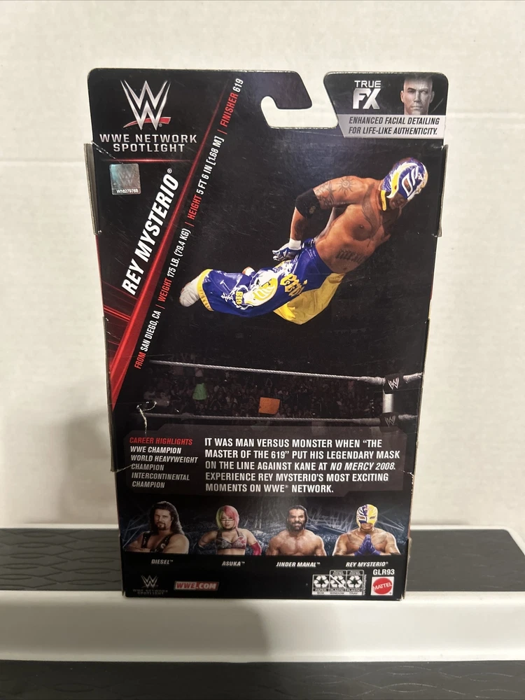 Rey Mysterio. WWE Network Spotlight. Elite Collection. 2019 Mattel. No Mercy Gear. Hard to Find. Little shelf damage on back so look at pictures before buying. Comes from a smoke and pet free home. Email me with any questions and check out my other auctions for more great buys.
