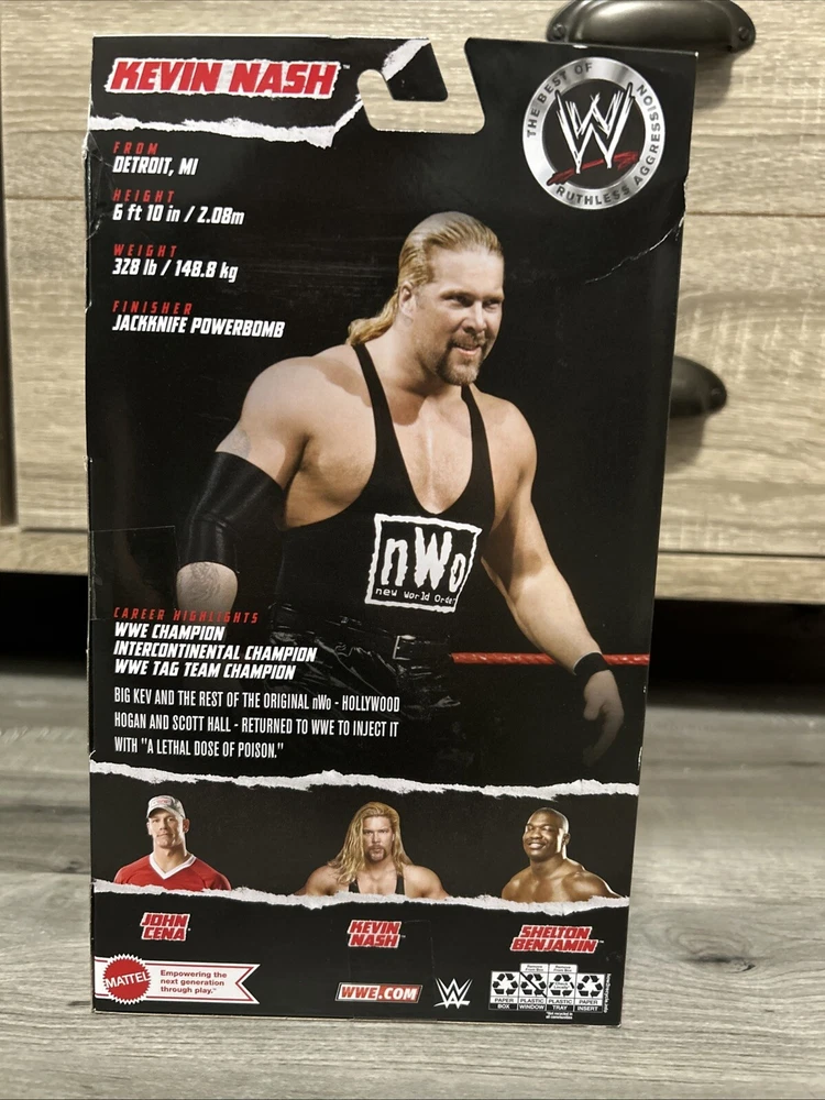 Kevin Nash NWO Mattel Elite figure. Box does have slight tear in top left corner (see pics) other that that box is in great shape! Never opened!