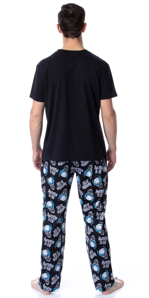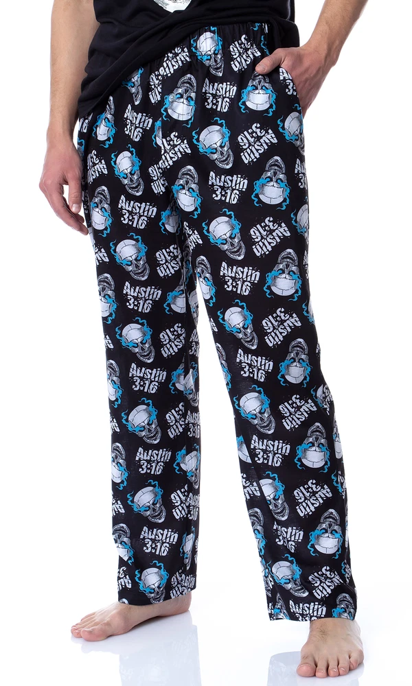 World Wrestling Entertainment, or WWE, is the premier professional wrestling promotion with over 450 live events every year, including WrestleMania, RAW, Royal Rumble, SummerSlam, and SmackDown. Its roster of wrestlers has gained international fame and has had storied wrestling and other entertainment venues like movies, music, and sports. The legends and current roster include Hulk Hogan, Andre The Giant, Vince McMahon, Roddy Piper, Stone Cold Steve Austin, The Rock Dwayne Johnson, The Undertaker, John Cena, Seth Rollins, Ultimate Warrior, Macho Man Randy Savage, AJ Styles, and Roman Reigns. This pajama set-top features a skull with 3:16 on its forehead--referencing the legend Stone Cold Steve Austin. The pants feature an all-over print of the same fiery skull. The pajama pants contain an WWE Mens' Wrestling Stone Cold Steve Austin 3:16 Sleep Pajama Set World Wrestling Entertainment, or WWE, is the premier professional wrestling promotion with over 450 live events every year, including WrestleMania, RAW, Royal Rumble, SummerSlam, and SmackDown. Its roster of wrestlers has gained international fame and has had storied wrestling and other entertainment venues like movies, music, and sports. The legends and current roster include Hulk Hogan, Andre The Giant, Vince McMahon, Roddy Piper, Stone Cold Steve Austin, The Rock Dwayne Johnson, The Undertaker, John Cena, Seth Rollins, Ultimate Warrior, Macho Man Randy Savage, AJ Styles, and Roman Reigns. This pajama set-top features a skull with 3:16 on its forehead--referencing the legend Stone Cold Steve Austin. The pants feature an all-over print of the same fiery skull. The pajama pants contain an elastic waistband that fits every fan, and the whole pajama set is 100% polyester. These are the best! Product Details Color Steve Austin Size Medium Brand Intimo Feature MERCHANDISE - Intimo specializes in nice, sleepwear for men, women, boys, and girls. Intimo is the industry leader in pop culture products and apparel that deal with the entertainment industry in comic books, tv shows, movies, music, sports, and what's trending.