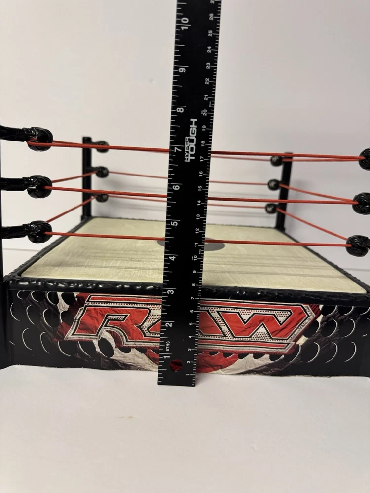 This WWE Raw and Smackdown Wrestling Ring is a must-have for any fan of the franchise. Made by Mattel, this ring is compatible with action figures and features a spring loaded mat for added excitement. The ring is made of durable plastic and is perfect for recreating your favorite WWE moments. Whether you're a collector or just looking for a fun toy to play with, this wrestling ring is a great addition to your WWE collection.