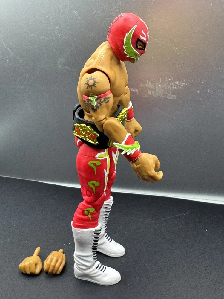 The WWE Rey Mysterio Mattel Elite Action Figure is a part of the Wrestling Series 100 collection by Mattel. This action figure features the famous wrestler Rey Mysterio and is designed to replicate his appearance and persona in the wrestling ring. As a part of the WWE franchise, this figure is an original reproduction and is sure to be a sought-after collectible for fans of wrestling and action figures. It is a must-have for any collector or fan of Rey Mysterio and the wrestling world.