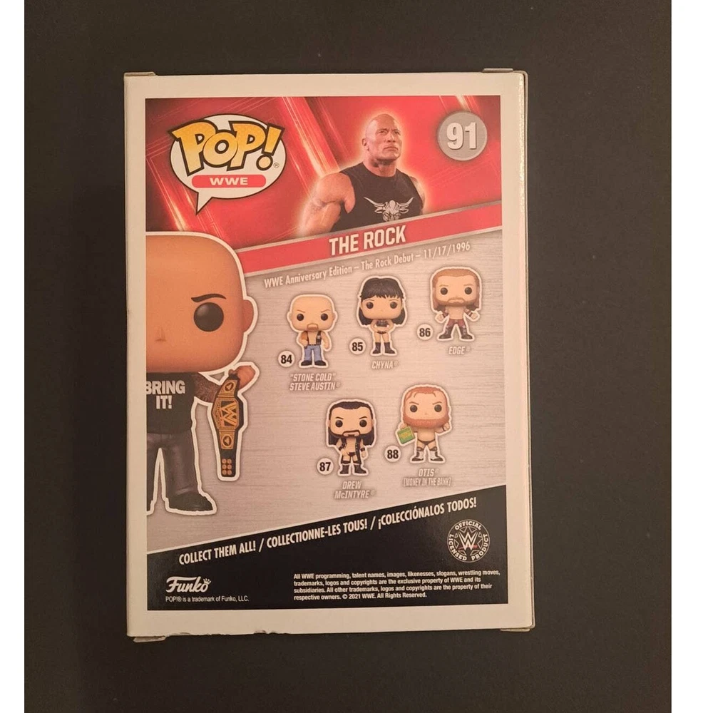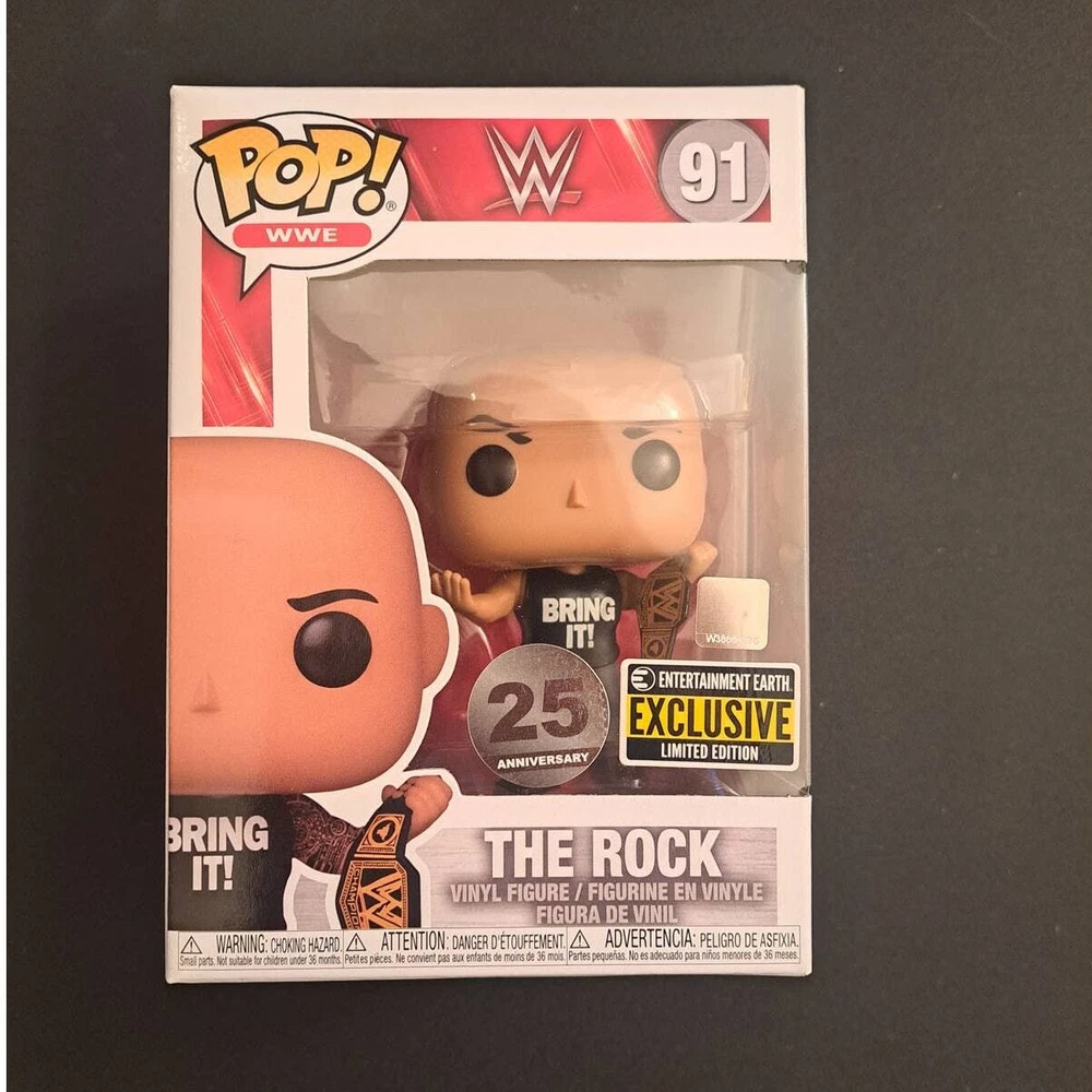 WWE The Rock Entertainment Earth Exclusive, 25th Anniversary Funko Pop. Has a bottom of box issue as shown in last photo. Will ship fast and with care!
