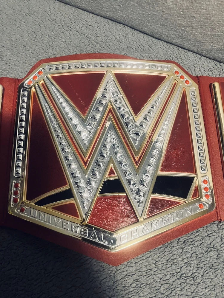 A PREOWNED WWE Universal Heavyweight Champion Belt Mattel 2014 Replica Red Belt ....the Belt is PREOWNED and HAS BEEN PLAYED WITH and I did replace one of the Velcro strips that came off (like majority of all these belts) but is still in Great Shape... Check out the pictures and judge the condition for yourself and feel free to ask any questions before purchasing... THANKS FOR LOOKING and remember the FREE SHIPPING!