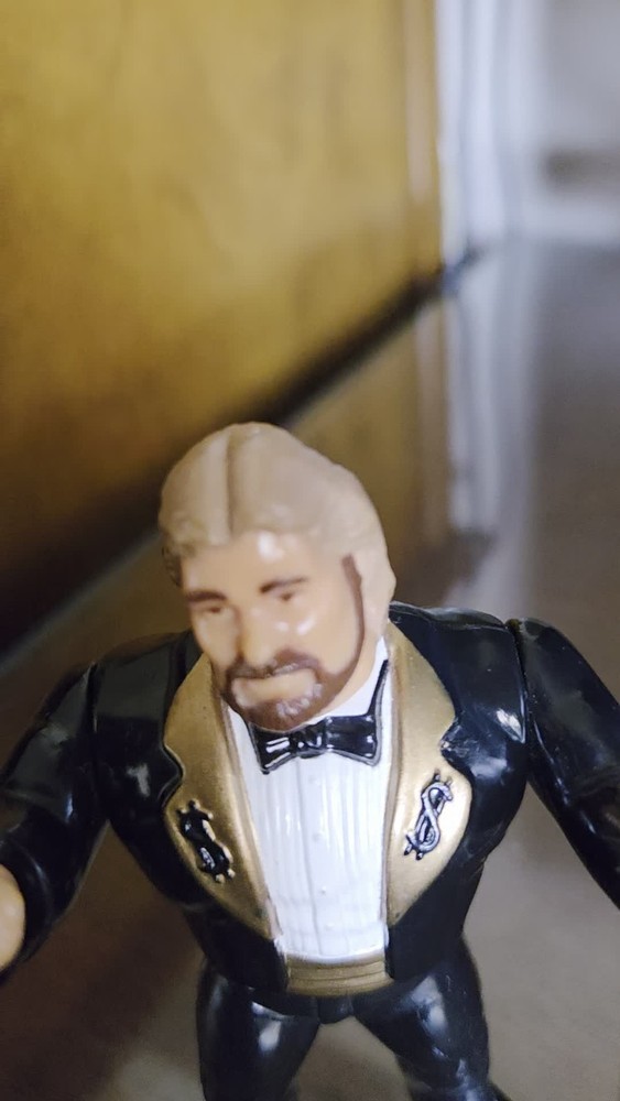 The WWF Hasbro Titan Sports Series 1 Million Dollar Man Wrestling Action Figure is a collectible toy representing the popular wrestler Million Dollar Man. This action figure is part of the sports series by WWF Hasbro, designed in vibrant multi-color attire to resemble the wrestler's iconic look. Perfect for fans of wrestling and collectors of sports memorabilia, this action figure captures the essence of the Million Dollar Man's persona and style in the ring. The figure still looks brand new and I am putting in one of his wrestling cards from the 1989 series. (No Charge)