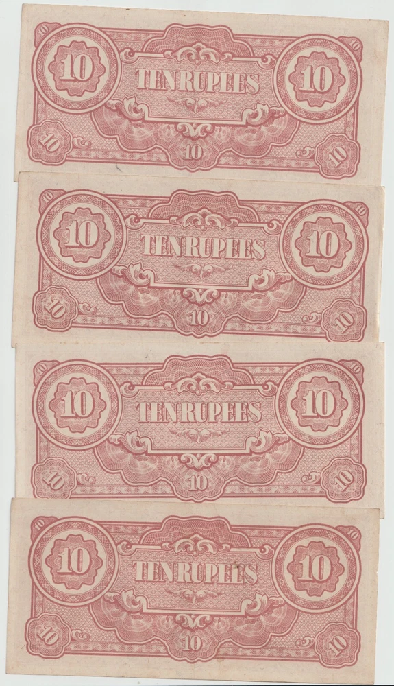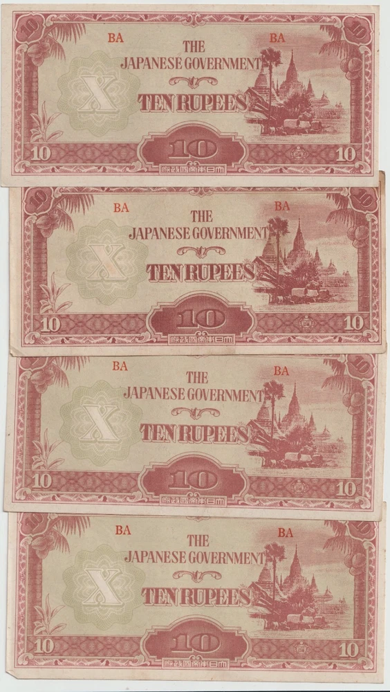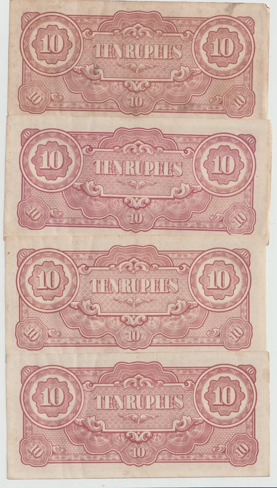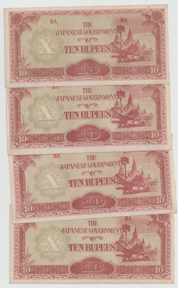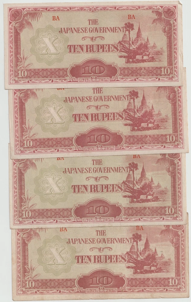 L@@K At My Other FREE SHIPPING Auctions!!! CLICK HERE >>>> https://www.ebay.com/str/Arcane-Treasures <<<< CLICK HERE Great WWII Items At Only $1.99 Per Note!!!!! This Is One Lot Thats Not In Many Peoples War History Collection. A Nice Lot That Will Complement Any Collection. Up For Sale Is A Lot Four (4) World War 2 Japanese Invasion Occupation Government Issued 10 Rupee Currency From Burma 1944 . Good Condition, Not Hole Punched Or Counterstamped Cancelled!!!! Beginning with the capture of the Philippines, the Japanese military confiscated all hard currency, both on a federal and individual level, replacing it with locally printed notes bearing a proclamation of military issue. All notes bore the name of the Imperial Japanese government. Japanese troops were ordered to destroy bank records and any remaining currency prior to capitulation. The Japanese invaded Burma in January 1942. They conquered Mandalay on 21 May 1942, forcing the British to retreat into India. The Japanese held Burma until the second Allied campaign of 1944, although an official surrender did not take place until August 1945. In 1942, the Japanese issued paper sculpture currency of 1, 5, and 10 cents and Re. 1⁄4, Re. 1⁄2, Re. 1/-, Rs. 5/-, and Rs. 10/-. Like most Japanese colonial currency from this period, a letter code was used on the notes. The first or top letter “B” indicates the note was printed and issued for Burma. The second letter or letters indicate the block (or printing batch) of the note, there are single letter blocks and double letter blocks for Burma, with the latter two letter blocks being identified by a hyphen separating the letter "B" from the block letters. In 1943, the Japanese commuted the sentence of Dr Ba Maw, an outspoken advocate for Burmese self-rule, and installed him as the head of the puppet government. From 1943 onward the Japanese issued paper sculpture currency of Re. 1/-, Rs. 5/-, and Rs. 10/- with a Rs. 100 note/- in 1944. The Japanese characters in the oblong box at the bottom of each note read “Government of Great Imperial Japan” and the contents of the seal comprise the Japanese symbol for the Minister of Finance. When the war ended all of these notes became obsolete, punch holes or counterstamped were made to indicate that the note had been cancelled/traded-in for newly monetized currency and therefore were demonetized. When WWII ended, most of these notes were destroyed or cancelled, but there were still a few uncancelled notes left. I Am Not A Professional Collector, So I Dont Know Condition Or Grades. Please Refer To Pictures Provided, For What Is Pictured Is A Good Example Of Of The Notes You'll Receive. Cold War Items Are Increasing In Popularity Rapidly!!!! FREE DOMESTIC SHIPPING!!!!!!! Very Low International Shipping Rate! L@@K At My Other FREE SHIPPING Auctions!!! CLICK HERE >>>> https://www.ebay.com/str/Arcane-Treasures <<<< CLICK HERE International Buyers: Please note that my country charges the international first class shipping rate to send 1oz-8oz, so depending on weight I can combine some items without an increase to the shipping cost. As you can see I try to cut the shipping cost for you as much as possible. If you win multiple items let me know so I can send a revised invoice . This store uses Ebays Automatic Unpaid Item Assistant that will send out payment reminders that it will call a case after 4 days of nonpayment saying to pay within 4 days after that. So as long as payment comes in before the 8th day all is good like nothing happened at all. Ebay has this store setup to leave positive feedback automatically once it is left for the seller. View more great items