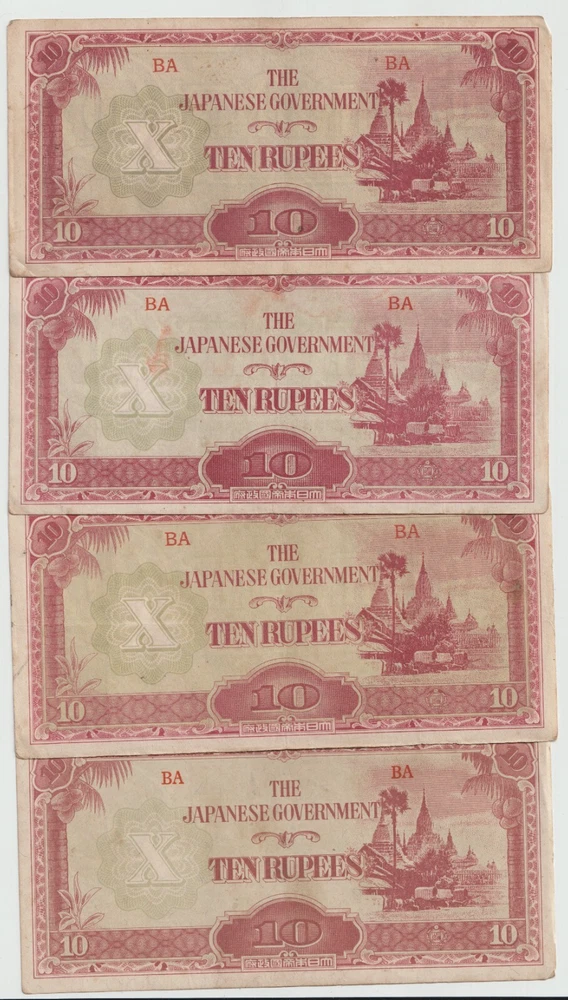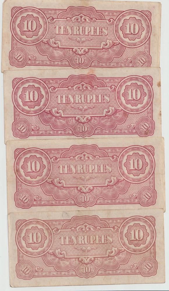 L@@K At My Other FREE SHIPPING Auctions!!! CLICK HERE >>>> https://www.ebay.com/str/Arcane-Treasures <<<< CLICK HERE AUCTIONS STARTING OFF $0.01 WITH NO RESERVE! This Is One Lot Thats Not In Many Peoples War History Collection. A Nice Lot That Will Complement Any Collection. Up For Auction Is A Lot Four (4) World War 2 Japanese Invasion Occupation Government Issued 10 Rupee Currency From Burma 1944 . Good Condition, Not Hole Punched Or Counterstamped Cancelled!!!! Beginning with the capture of the Philippines, the Japanese military confiscated all hard currency, both on a federal and individual level, replacing it with locally printed notes bearing a proclamation of military issue. All notes bore the name of the Imperial Japanese government. Japanese troops were ordered to destroy bank records and any remaining currency prior to capitulation. The Japanese invaded Burma in January 1942. They conquered Mandalay on 21 May 1942, forcing the British to retreat into India. The Japanese held Burma until the second Allied campaign of 1944, although an official surrender did not take place until August 1945. In 1942, the Japanese issued paper sculpture currency of 1, 5, and 10 cents and Re. 1⁄4, Re. 1⁄2, Re. 1/-, Rs. 5/-, and Rs. 10/-. Like most Japanese colonial currency from this period, a letter code was used on the notes. The first or top letter “B” indicates the note was printed and issued for Burma. The second letter or letters indicate the block (or printing batch) of the note, there are single letter blocks and double letter blocks for Burma, with the latter two letter blocks being identified by a hyphen separating the letter "B" from the block letters. In 1943, the Japanese commuted the sentence of Dr Ba Maw, an outspoken advocate for Burmese self-rule, and installed him as the head of the puppet government. From 1943 onward the Japanese issued paper sculpture currency of Re. 1/-, Rs. 5/-, and Rs. 10/- with a Rs. 100 note/- in 1944. The Japanese characters in the oblong box at the bottom of each note read “Government of Great Imperial Japan” and the contents of the seal comprise the Japanese symbol for the Minister of Finance. When the war ended all of these notes became obsolete, punch holes were made to indicate that the note had been "cancelled" and therefore demonetized. When WWII ended, most of these notes were destroyed, but there were still a few left. I Am Not A Professional Collector, So I Dont Know Condition Or Grades. Please Refer To Picture, What Is Pictured Is What You'll Receive. Cold War Items Are Increasing In Popularity Rapidly!!!! FREE DOMESTIC SHIPPING!!!!!!! Very Low International Shipping Rate! L@@K At My Other FREE SHIPPING Auctions!!! CLICK HERE >>>> https://www.ebay.com/str/Arcane-Treasures <<<< CLICK HERE International Buyers: Please note that my country charges the international first class shipping rate to send 1oz-8oz, so depending on weight I can combine some items without an increase to the shipping cost. As you can see I try to cut the shipping cost for you as much as possible. If you win multiple items let me know so I can send a revised invoice . This store uses Ebays Automatic Unpaid Item Assistant that will send out payment reminders that it will call a case after 4 days of nonpayment saying to pay within 4 days after that. So as long as payment comes in before the 8th day all is good like nothing happened at all. Ebay has this store setup to leave positive feedback automatically once it is left for the seller. View more great items