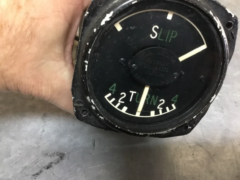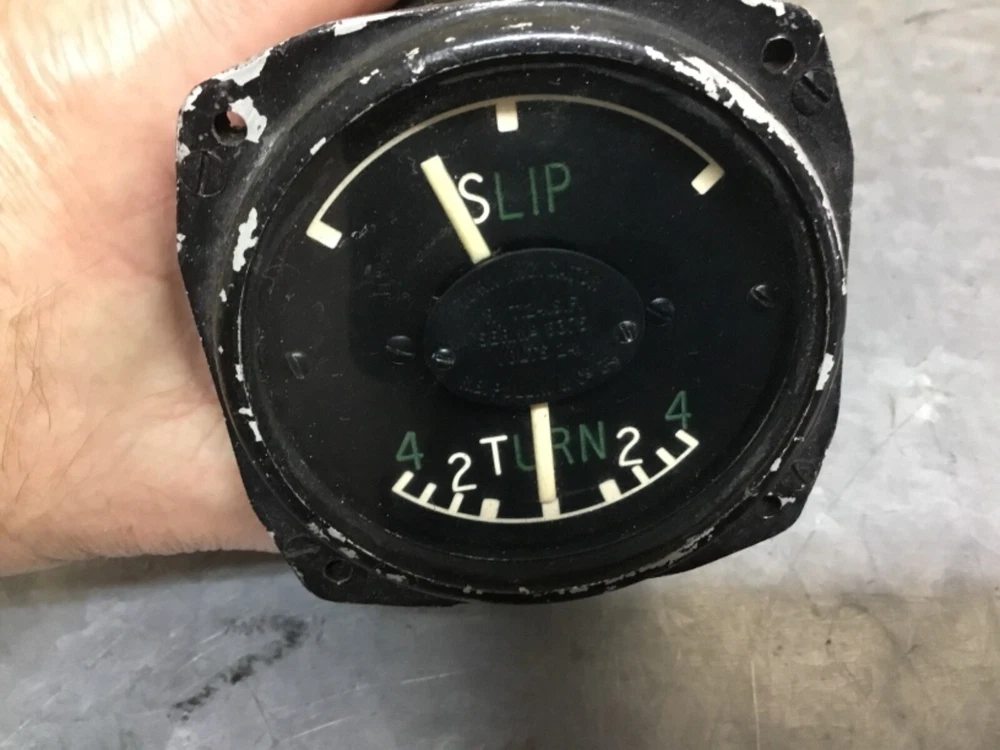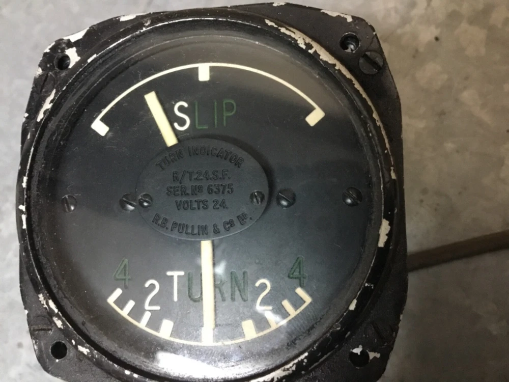 British used two main types of turn indicators, this is the less often seen version as what fits a standard 3 and 1/8” instrument Mount, unlike their other version. As a result this instrument was most often seen in lend-lease US equipment operated but RAF or RCAF, RAAF, RNZAF, etc. the Lockheed Hudson, Lockheed Ventura, Beech 18, AT-6, were frequently equipped with this instrument when operated by RAF. It’s a 24V electric DC gyro that is actually two instruments in one. The top needle indicates coordinated turn, and the bottom indicates rate of turn. Both comprise one portion of blind flight equipment for aircraft. Gyro has been untested but has intact wiring. Clean face, good glass, clear markings, visible inked acceptance stamp on rear of case and ghost markings on face (see photos) This instrument was part of a retired RAF instrument collector and in his private collection last 30+ years. I will pack it carefully but I would suggest insuring it due to its value. -9
