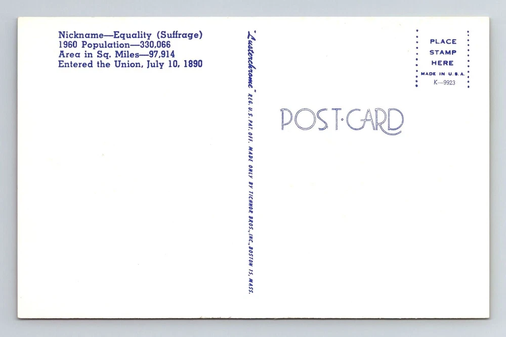 Country/Region of Manufacture: Unknown Region: Wyoming Type: Printed (Lithograph) City: Wyoming Era: Chrome Country: USA Postage Condition: See Image Unit of Sale: Single Unit Theme: Cities & Towns Subject: Cities & Towns Original/Licensed Reprint: Original