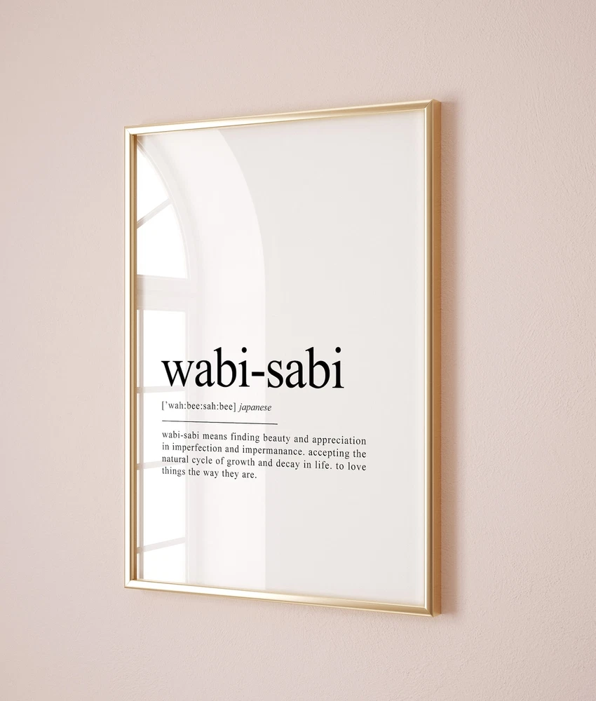 Wabi Sabi Japanese Definitions Wall Art Wabisabi Motivating Japanese Prints Holistic Living Office Posters Wabisabi Material: Premium luster photo paper Print type: Inkjet printing One side printed + The finish provides the highest possible resolution and color saturation + Lasts up to 200 years in color and 400 years in black-and-white + Printed on high-quality resin-coated photo base paper medium + Posters can be hung with double-sided tape, tacks, or framed + Hand washing with a gentle cry cloth is recommended for extended durability I will hand select the best choice of paper for your chosen design to ensure top quality results for a beautiful, bright and luxurious print. All prints are sealed in cellophane slips for protection during transportation, and are shipped in a protective cardboard envelope.