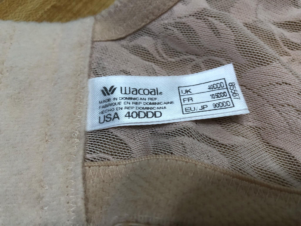Welcome to Pim's clothing sales Very nice condition bra. Beige color floral lace. Three position adjustable back strap. Brand: Wacoal Material: Nylon/spandex Size : 40DDD tagged (Ask if you need more measurements) Please Remember all Clothing Items may fit differently depending on Brand, Fit, Use or Prior customization. We strongly urge our customers to check measurements first to guarantee proper fitting. Please be sure to check out our listings frequently for more high quality Designer Brand clothing items at a fraction of the price. We are getting new inventory all the time! You never know what amazing deals you may find :) Shipping discounts will be provided for multiple purchases - Please contact us after multiple purchases for an updated invoice.
