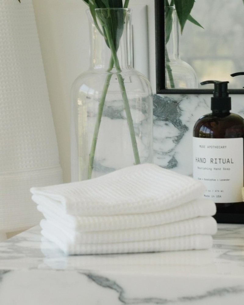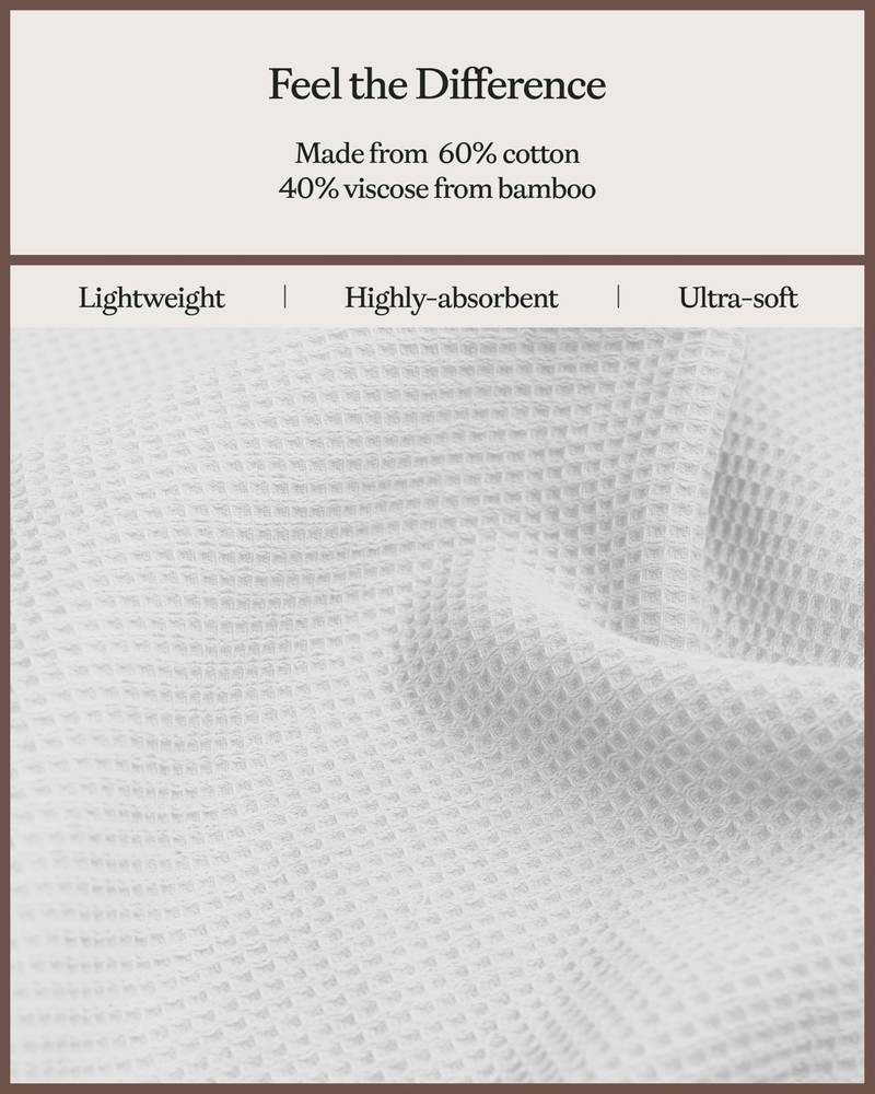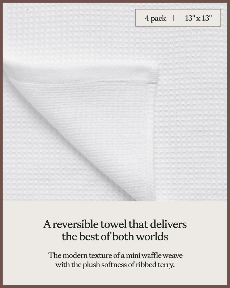 Indulge in Everyday Luxury with Our Waffle washcloths Experience the ultimate in comfort and style with 's Nantucket washcloths. These plush washcloths are designed with a unique rice weave construction for quick-drying convenience while maintaining a soft, cozy texture. Perfectly sized as large washcloths, each piece provides exceptional coverage and absorbency, making them ideal for daily use or adding a spa-like touch to your bathroom. With a heathered design inspired by coastal living, these oversized washcloths combine elegance and practicality. Measuring 30” x 58”, they offer the ideal balance of lightweight feel and luxurious softness. Sold in a convenient 4-pack, these washcloths large enough to suit all your needs become even softer with every wash. Upgrade your bathroom experience with these extra large washcloths oversized for unbeatable quality and style. MODERN TEXTURED DESIGN: The Waffle Washcloths combine a mini waffle weave on one side with soft, ribbed terry on the other, bringing timeless style, plush texture, and superior drying power to your daily post-shower routine. VERSATILE 4-PACK SET: Includes two generously sized 13" x 13" washcloths. Perfect for drying off comfortably after a shower or bath and adding a polished, spa-inspired touch to your bathroom with soft texture and classic style. ULTRA-SOFT YET ABSORBENT: Made from a premium blend of 60% cotton and 40% viscose from bamboo, these washcloths offer exceptional softness, lasting strength, and quick-drying performance for a touch of everyday luxury. CARE: Wash before first use. Use color-safe detergent and machine wash warm with similar colors. For maximum absorbency, avoid excessive use of fabric conditioners. Tumble dry low. Do not bleach. DISCOVER THE WAFFLE BATH COLLECTION: Pair with matching hand towels, bath sheet, or bath towels to create a beautifully coordinated set. Each piece showcases the same elegant texture and quality craftsmanship.