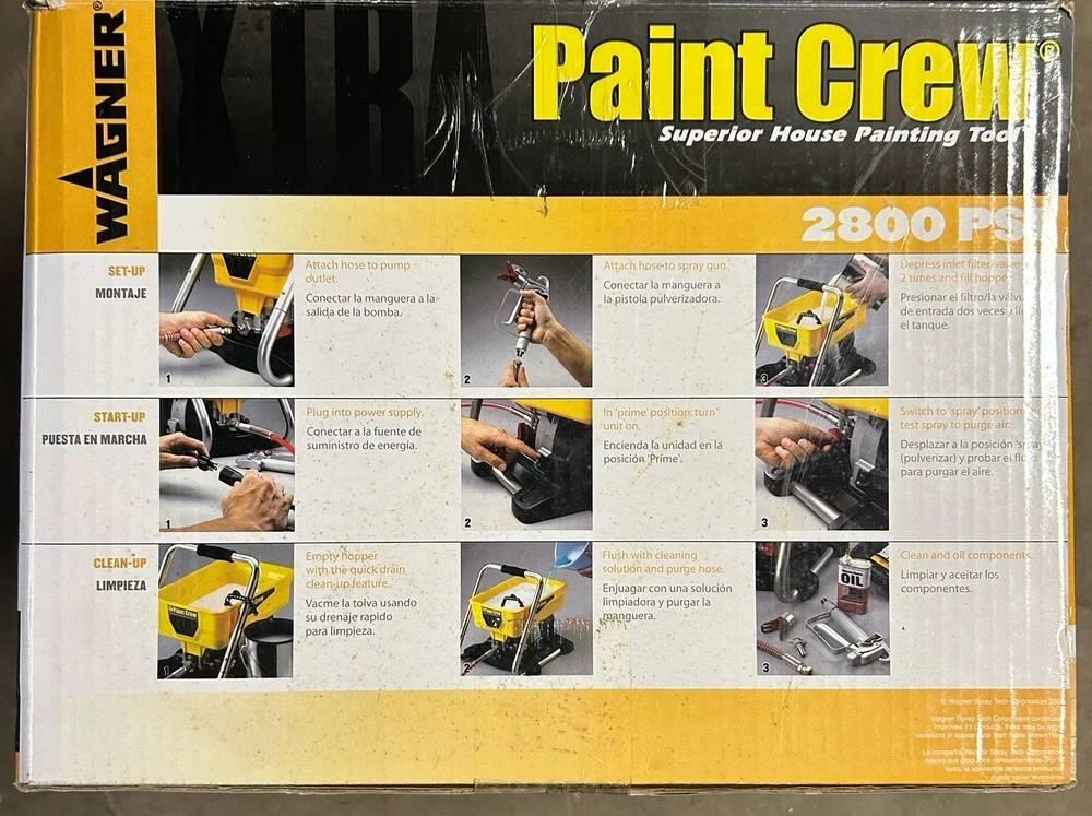 The Wagner Paint Crew Model 770 Electric Airless Paint Sprayer is a versatile tool suitable for exterior painting projects. With a 2-gallon cup/hopper capacity and a piston pump, this sprayer can efficiently dispense paint through a 517 spray tip size. The 4-finger trigger configuration allows for easy control, while the adjustable pattern control feature ensures a smooth finish. The included hose and cart frame make it convenient to use and transport, making it a reliable choice for both professionals and DIY enthusiasts. Additionally, the manufacturer warranty of 1 year provides peace of mind for any purchases.
