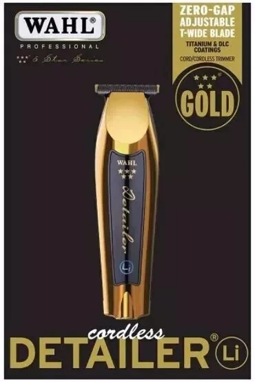 The T-wide blade has titanium and DLC coatings so blades stay cooler, are corrosion resistant, and are extremely strong The adjustable T-wide blade (#2215-700) can be zero-gapped for extremely close trimming It uses a powerful, full-sized clipper motor to cut smoothly through all hair types It operates for 100+ minutes and features a lithium-ion battery with smart LED charging It comes with a stylish, weighted, space-saving, charge stand The Ultimate Cordless Trimmer! (Model 08171-700) The T-wide blade has titanium and DLC coatings so that blades stay cooler, are corrosion resistant, and are extremely strong, delivering consistently high performance. The cordless Detailer® Li Gold has an adjustable T-wide blade (#2215-700) for extremely close trimming. It operates for 100+ minutes on a full charge and comes with a weighted, space-saving, charge stand. It features a lithium-ion battery with smart LED charging. This American-made professional hair trimmer uses a powerful, full-sized clipper motor to cut smoothly through all hair types. Blades can be zero-gapped using the Pro-Set tool and is ideal for lining, trimming, and facial hair detailing and design. The cord/cordless hair trimmer measures 5.75" in length, weighs 6.6 ounces and includes 3 trimming guides (1/16", 1/8", 3/16"), power cord, charge stand, pre-shave brush, cleaning brush, oil, red blade guard, pro-set tool and operating instructions. PLEASE NOTE: Due to continuous improvement, the product appearance may slightly vary from the product images on this listing. Made in USA. In The Box Professional Cord/Cordless Trimmer 3 T-Wide Trimming Guides (1/16", 1/8", 3/16") Charge Stand Pro-Set Tool Cleaning Brush Power Supply Operating Instructions Red Blade Guard Note: Oil not available in the package because of leakage issue