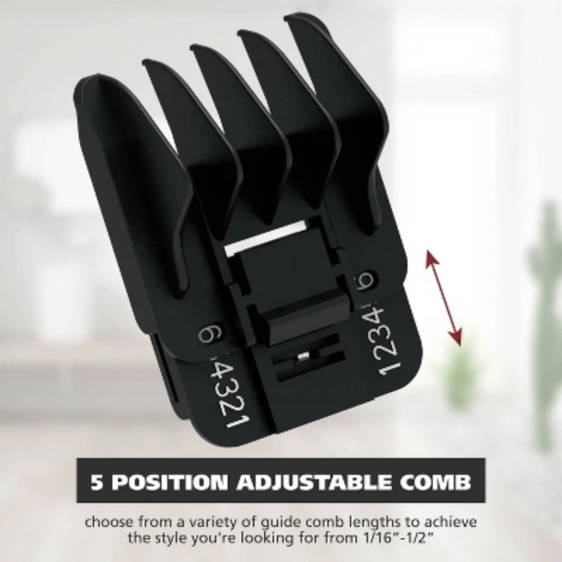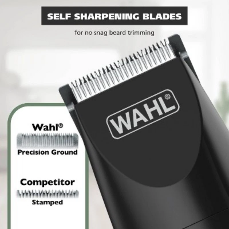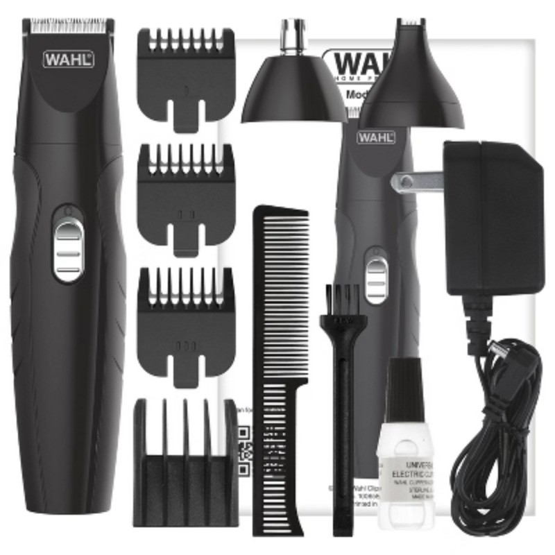 Description The Wahl® Rechargeable All-In-One Groomer offers versatility for all your grooming needs. This electric beard trimmer is designed for precision and convenience, making it ideal for trimming beards, mustaches, stubble, and even body hair. The trimmer features self-sharpening precision blades that ensure a consistently smooth and efficient cut, whether you're at home or on the go. With its 5-position adjustable guide comb, which offers cutting lengths from 1/16 to 1/2, and three individual stubble guide combs, this multi-grooming kit allows you to customize your beard and mustache styles with ease. For precise detailing and cleaning, the included rotary attachment head is perfect for hygienically removing ear and nose hairs and can be rinsed for effortless maintenance. The Wahl® Rechargeable All-In-One Groomer also comes with a detail trimmer head, ideal for cleaning up eyebrows and refining the areas around your beard. Enjoy the freedom of cordless grooming by plugging the trimmer into charge and unplugging when ready to use with up to 80 minutes of cordless runtime. This cordless beard trimmer ensures that you're always prepared for a quick trim or a thorough grooming session. Whether you need a versatile men’s beard trimmer, a reliable beard trimmer kit, or a multi-grooming tool, the Wahl® Rechargeable All-In-One Groomer delivers precision and performance in one compact, easy-to-use device. Experience the convenience of Wahl’s® trusted engineering and achieve your ideal grooming look with confidence. highlights Multi-Purpose Grooming: The Wahl® Rechargeable All-In-One Groomer excels in trimming beards, mustaches, stubble, and body hair, making it the ultimate electric beard trimmer for all your grooming needs Precision Cutting: Equipped with self-sharpening precision blades, this trimmer ensures a consistently smooth and efficient cut for a flawless grooming experience at home or on the go Adjustable Lengths: The 5-position adjustable guide comb offers cutting lengths from 1/16 to 1/2, along with three stubble guide combs, allowing for customizable beard and mustache styles Hygienic Grooming: The rotary attachment head efficiently removes ear and nose hairs and is rinseable for easy maintenance, while the detail trimmer head perfects eyebrows and beard edges Cordless Convenience: Enjoy up to 80 minutes of cordless runtime on a full charge, with the flexibility to plug in to charge when needed.