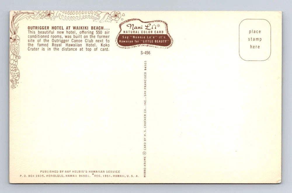 Waikiki Beach HI-Hawaii, Outrigger Hotel, Souvenir, Vintage Postcard