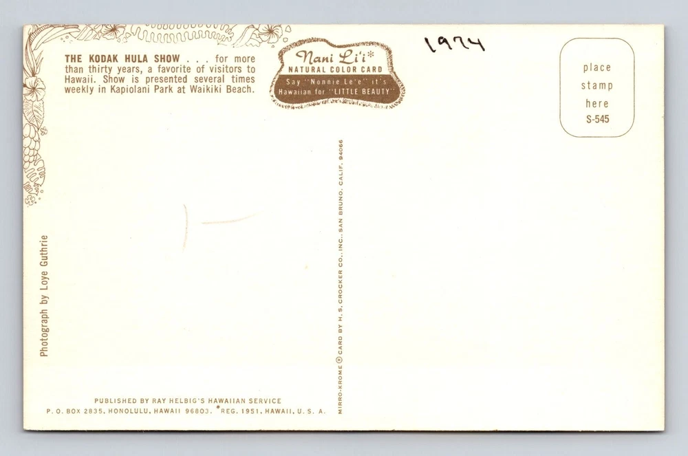 Waikiki Beach HI-Hawaii, The Kodak Hula Show, Kapiolani Park, Vintage Postcard