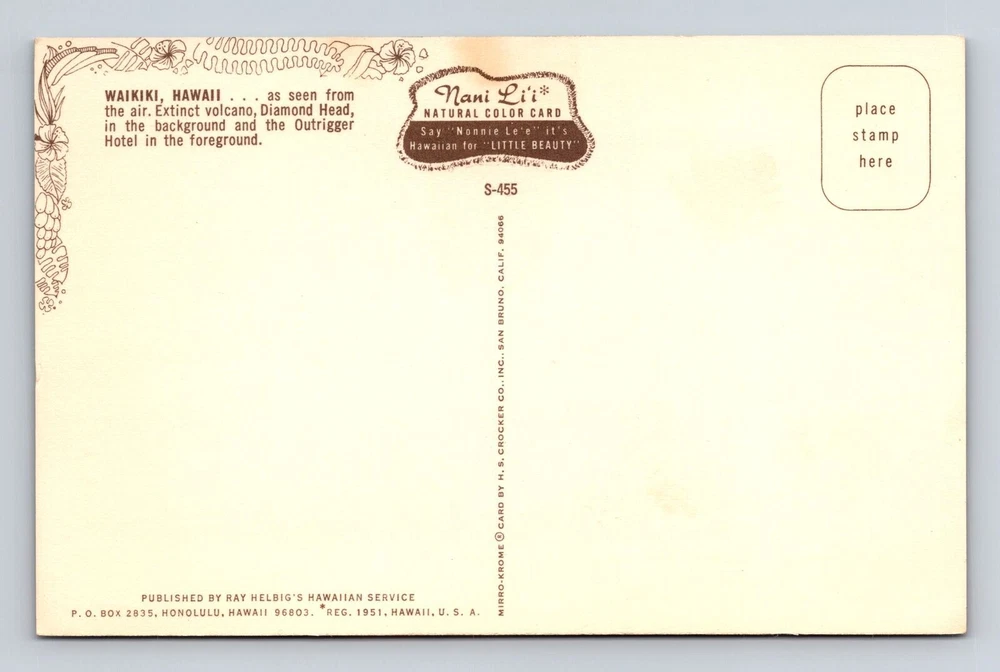 Region: Hawaii Type: Printed (Lithograph) Theme: Cities & Towns Era: Vintage Country: USA Country/Region of Manufacture: Unknown City: Waikiki Original/Licensed Reprint: Original Unit of Sale: Single Unit Postage Condition: Unposted Subject: Cities & Towns