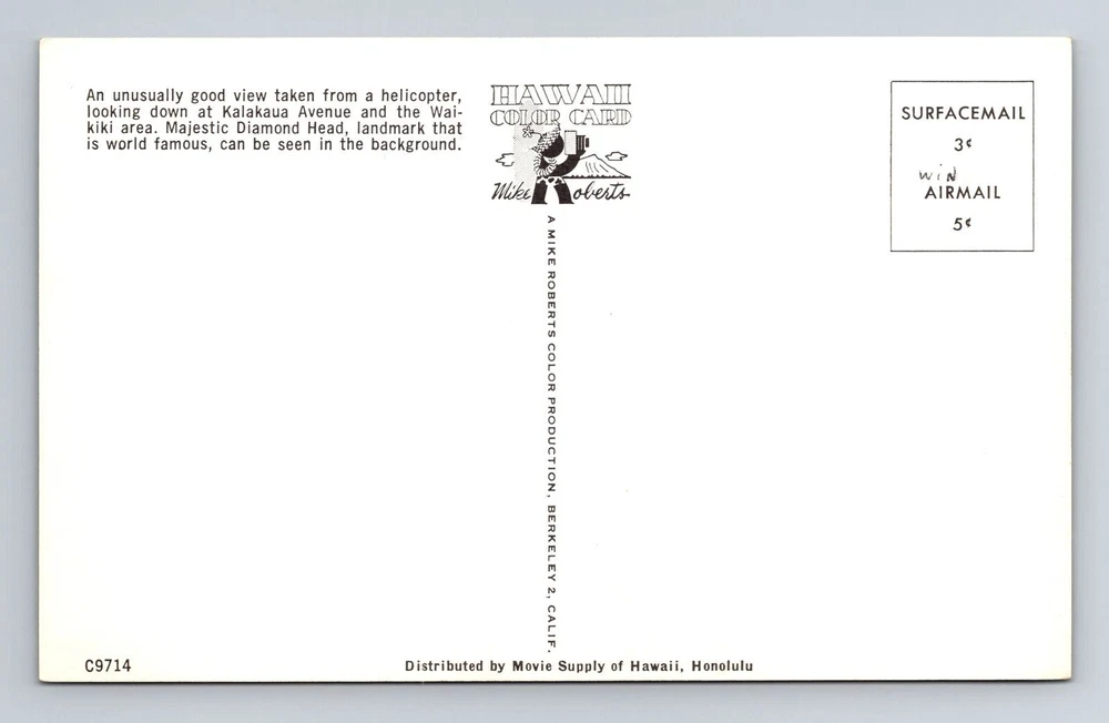 Type: Printed (Lithograph) Era: Vintage Size: Standard (5.5 x 3.5 in) City: Waikiki Unit of Sale: Single Unit Postage Condition: Unposted Theme: Cities & Towns Country: USA Material: Paper Subject: Cities & Towns Original/Licensed Reprint: Original Country/Region of Manufacture: Unknown Region: Hawaii