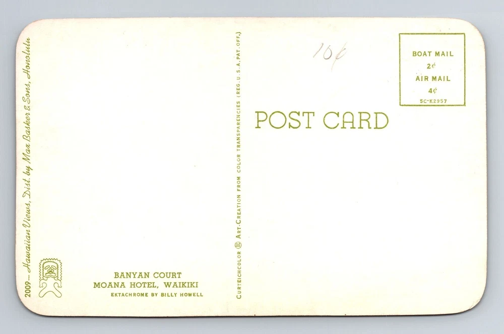 Waikiki HI-Hawaii, Banyan Court, Moana Hotel, Souvenir, Vintage Postcard