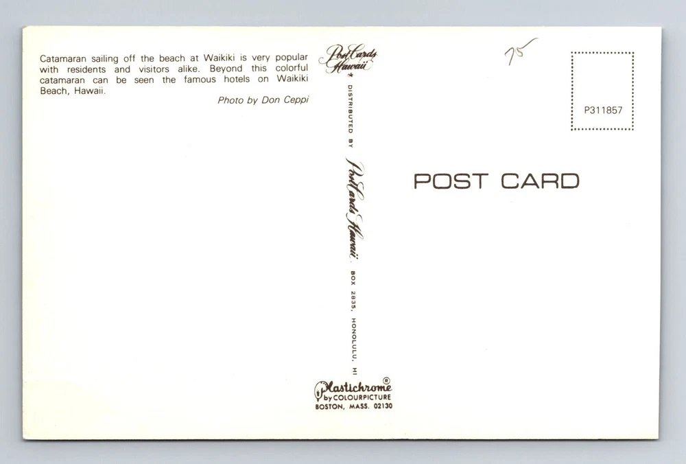 Waikiki HI-Hawaii, Catamaran Sailing On Beach, Antique, Vintage Postcard