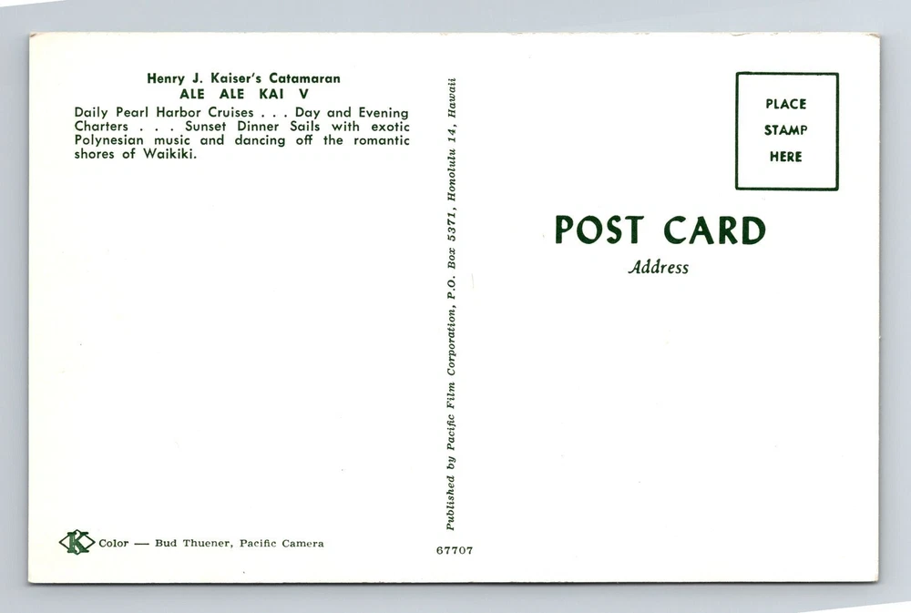 Waikiki HI-Hawaii, Henry J Kaiser's Catamaran, Vintage Postcard