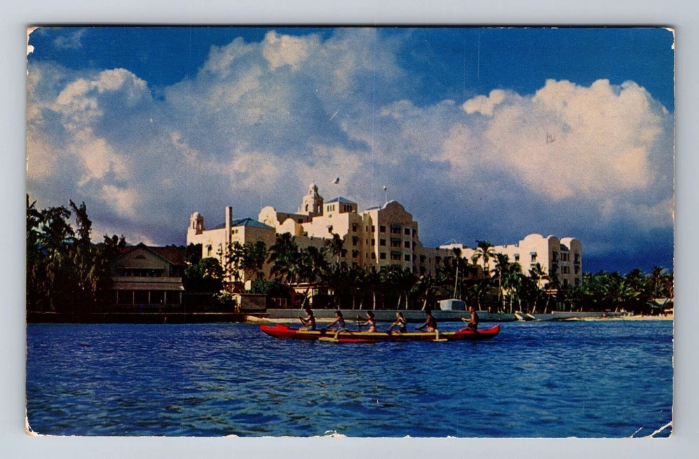 Waikiki HI-Hawaii, Outrigger Canoeing, Vintage c1952 Postcard