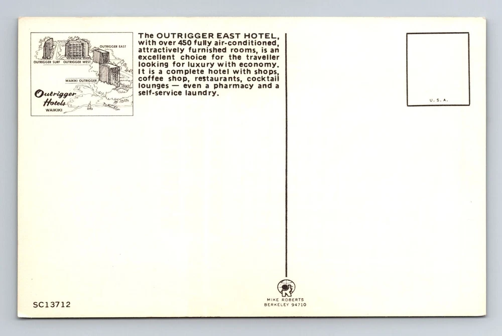 Waikiki HI-Hawaii, Outrigger East Hotel Main Lawn, Advertising Vintage Postcard