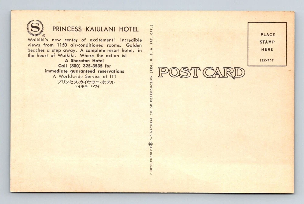 Waikiki HI-Hawaii, Princess Kaiulani Hotel, Advertising, Vintage Postcard