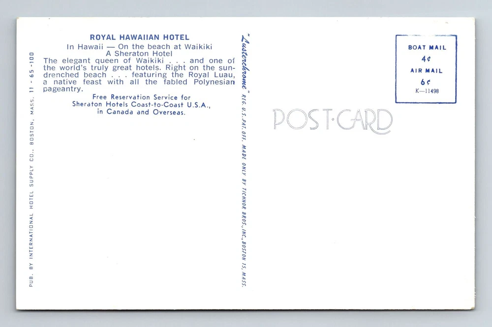 Waikiki HI-Hawaii, Royal Hawaiian Hotel, Advertising, Vintage Postcard