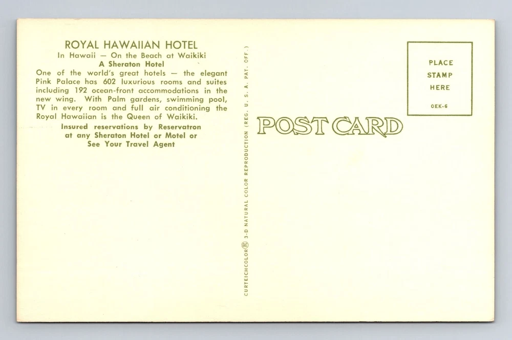 Waikiki HI-Hawaii, Royal Hawaiian Hotel, Souvenir, Vintage Postcard