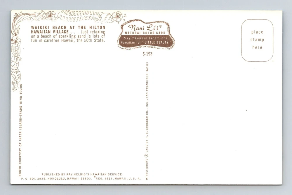 Subject: Cities & Towns Country: USA Unit of Sale: Single Unit City: Waikiki Type: Printed (Lithograph) Original/Licensed Reprint: Original Postage Condition: See Image Country/Region of Manufacture: Unknown Theme: Cities & Towns Era: Chrome Region: Hawaii