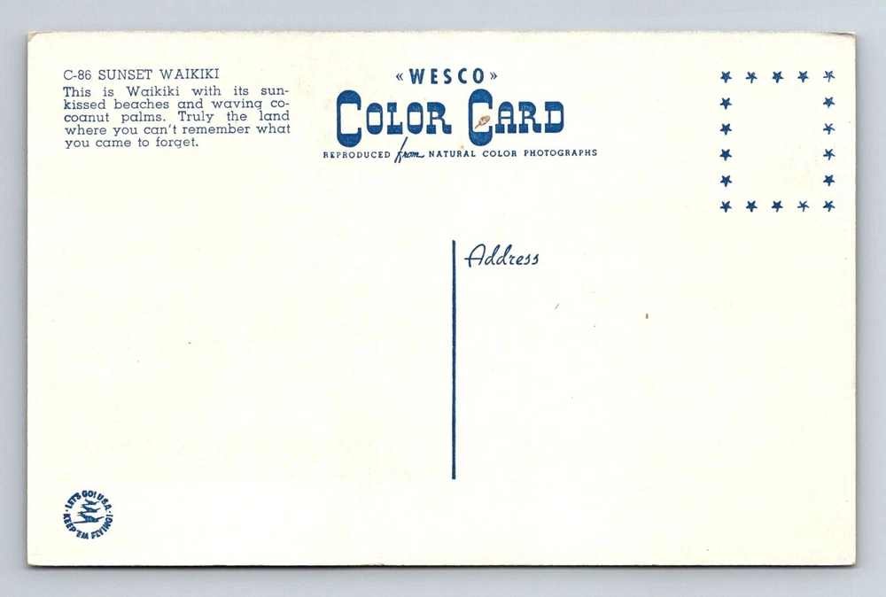 Original/Licensed Reprint: Original Unit of Sale: Single Unit Country: USA Theme: Cities & Towns Type: Printed (Lithograph) Postage Condition: See Image Subject: Cities & Towns Country/Region of Manufacture: Unknown Era: Vintage Region: Hawaii City: Waikiki