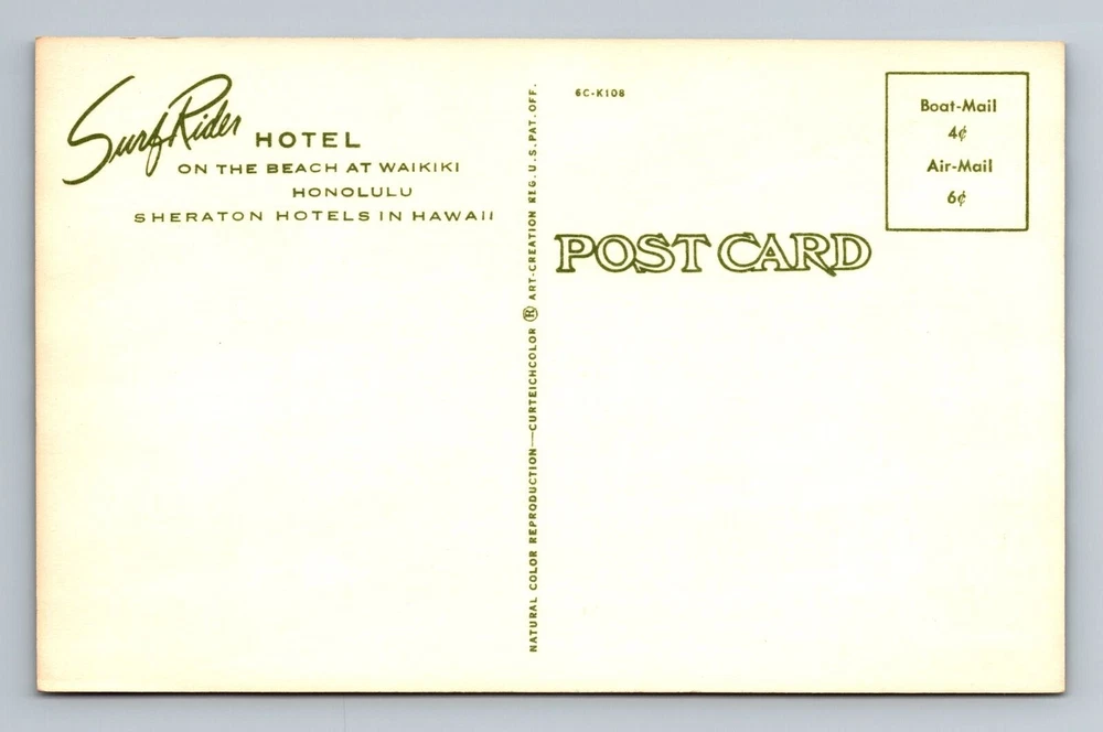 Waikiki HI-Hawaii, Surf Rider Hotel, On The Beach, Vintage Postcard