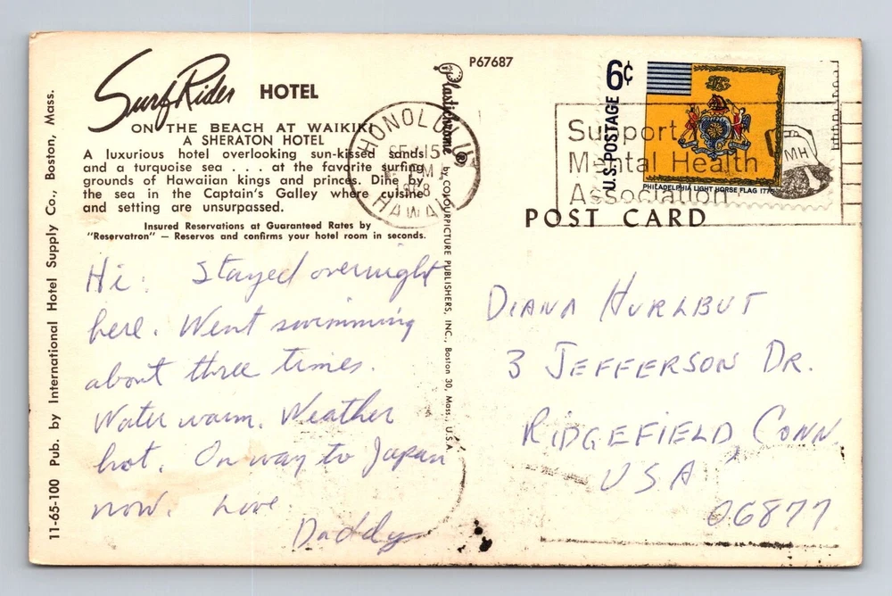 Waikiki HI-Hawaii, SurfRider Hotel, Souvenir, Vintage c1968 Postcard