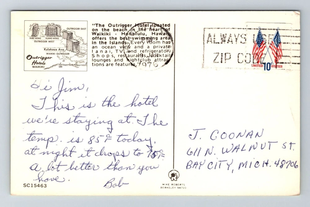 Waikiki HI-Hawaii, The Outrigger Hotel, Scenic View, Vintage Postcard