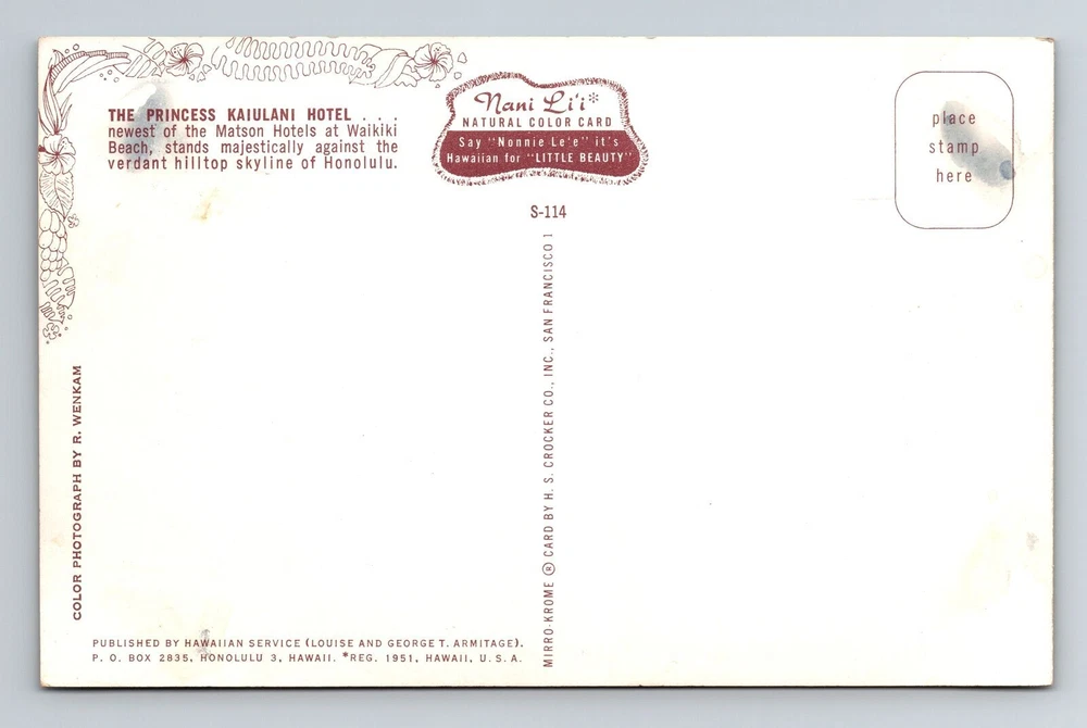 Waikiki HI-Hawaii, The Princess Kaiulani Hotel, Vintage Postcard