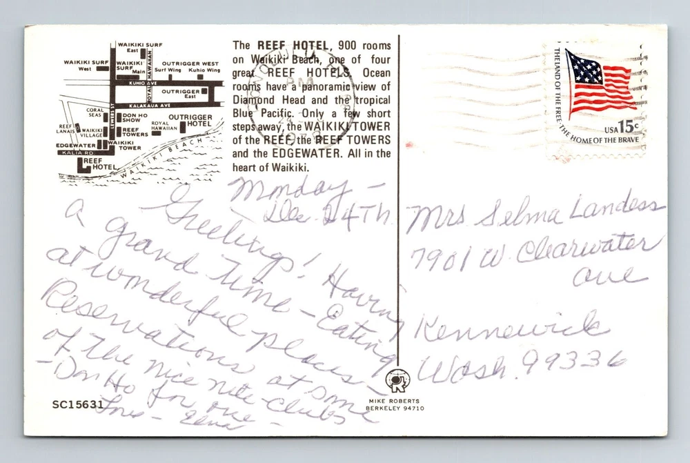 Waikiki HI-Hawaii, The Reef Hotel, Outside Beach View, Vintage Postcard
