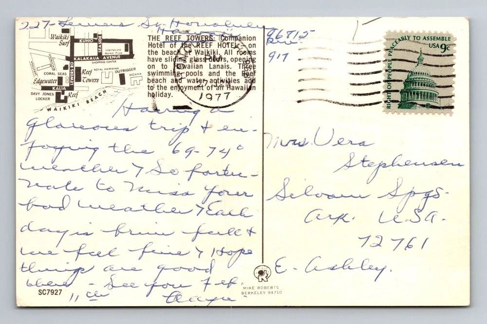 Waikiki HI-Hawaii, The Reef Tower, Advertising, Antique Vintage c1977 Postcard