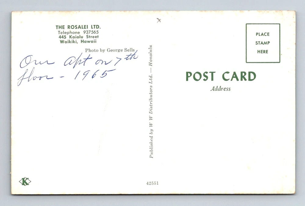 Waikiki HI-Hawaii, The Rosalei LTD, Advertising, Vintage Postcard