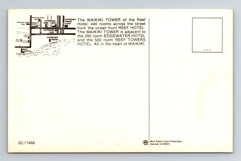 Waikiki HI-Hawaii, The Waikiki Tower Reef Hotel, Vintage Postcard
