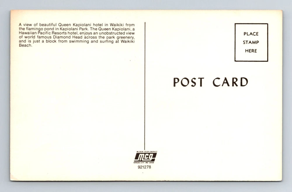 Waikiki HI-Hawaii, View Queen Kapiolani Hotel, Vintage Postcard