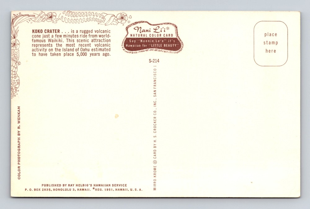 Waikiki Hawaii Koko Crater Volcanic Cone Vintage Souvenir Postcard