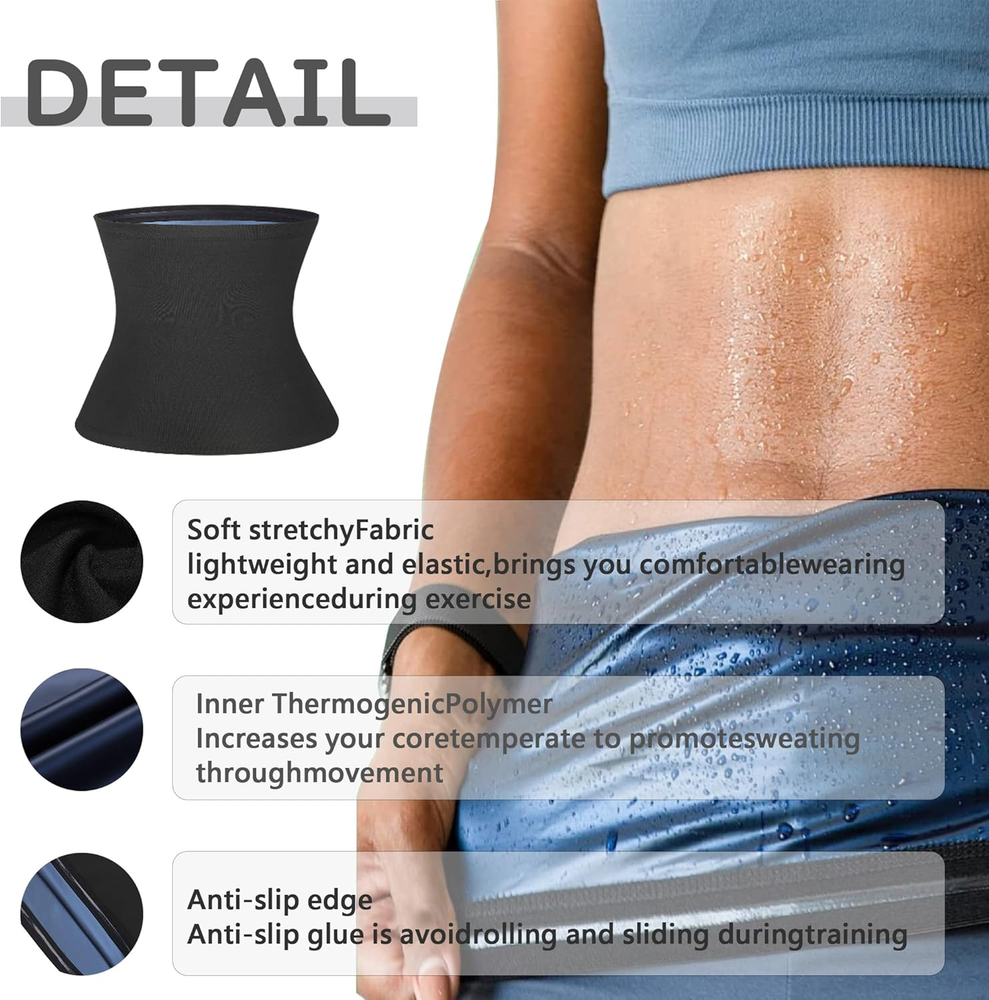 Heat trapping Imported WAIST TRAINER FOR WOMEN:This waist trainer wrap is stretchy enough to feel your stomach being sucked in immediately after put it on. Waist band of inner layer hot thermo sauna fabric can quickly form heat reflection and heat circulation in the abdomen, increase core body temperature, promote sweating in a short time. Achieve multiple sweating effect during exercise makes you easier to reach your belly weight loss goals! 6TIMES SWEAT WAIST TRIMMER: sweat band waist trainer for women uses a heat-trapping polymer fabric to boost your natural body heat and stimulate sweating with any type of physical activity. Wearing the Waist Trimmer while working out or while performing daily activities creates a hot sauna-like experience. give that toned and athletic look you always wanted. NO ROLL DOWN DESIGN&HIGH COMPRESSION: Perfect detail design, with wide silicone non-slip, it won't fall off at any time. Thanks to's specially engineered top-layer performance compression fabric, you'll instantly look slimmer and more toned the moment you put it on. The Waist Trimmer will tuck your tummy in, shape your waistline TO REDUCE 3-5 INCHES. SWEATING LIKE RAINING: Even a daily walk can give you the SAUNA experience! This slim waist belly belt have a significant sweat effect can be used as a PORTABLE SAUNA around waist, you can feel boosts belly thermal activity after put on only 10-15 minutes. Weight loss tummy belt help you sweating like crazy to discharge excess moisture and accelerate fat burning, makes you more than 6 times sweat, you' ll burn more calories faster during exercise. Please pay attention to drink water in time. COMFORTABLE TO WEAR: this waist trimmer is waterproof, lightweight and elastic, brings you comfortable wearing experience during exercise due to the good stretch Practical tools: this belt is very useful for wearing at the gym, yoga, cardio, cycling, running and so on; You can also wear it under your clothes,No effect on movement Product Description Sweat Waist Trimmer Trainer Sauna Suit Waist Trimmer for Women 1.This sauna Sweat Waist Trimmer is made of high quality polymer fabric that absorbs heat and enhances natural sweating 6 times so you will enjoy a hot sauna like experience and associated health benefits. More sweat, less time. 2.Sauna waist wrap for women very lightweight, durable and high stretch, it will not chafe or irritate your skin. It's very comfortable and healthy for daily wear and workout. Waist Trimmer Trainer for Women Lower Belly waist trimmer made of special lightweight neoprene-free material,whcih can increases core body temperature & absorbs sweat easily.Like a sauna suit which helps to trim you,removing excess sweat/water weight during exercise,fat loss faster during working out with the thermo belly warmer belt.Provides compression to support your lower back and abdominal muscles.Acts like a compression belly binder around the waist to offer back brace support and create the best posture for healing 1.Stay-put details inside the seams keep you focused on your workout, while our lightweight compressive design increases blood flow, reducing muscle fatigue and preventing strain. Perfect for providing targeted support to abdominals and lower back, while also suitable for wearing under clothes for instant slimming during everyday activities. 2.The Women's Waist Trimmer from contours your body while providing superior compression support for better, more efficient workouts. you can feel confident and comfortable during sweat-soaked workouts. Waist Trimmer combines an exclusive blend of performance compression and polymer fabrics that work together to accelerate your natural body heat and create an intense sauna-like experience. 3,When you wear the shapewear at the first time, you may feel tight or Uncomfortable. Don't worry, it will be better after 2 days try.