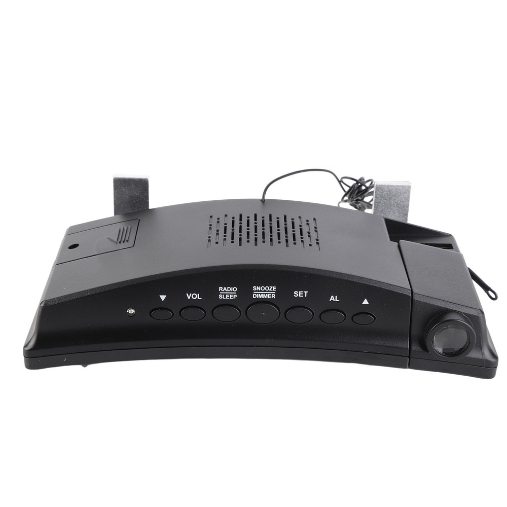 Feature: 1. FM76-108 frequency range, and can storage 15 radio channel, strong and powerful. 2. Adopt 4Ω 3W trumpet, professional amplifier circuit design, provides great sound quality. 3. 0-10 levels volume adjust design, you can hear sounds clearly from different distance. 4. 8 inch large digital display, can be used as an alarm clock and timer. 5. Large font display, easy to read. 6. Double alarm clock setting, never miss any important affair. 7. 2 alarm modes, you can use beeping or FM radio. 8. 3 display brightness level adjustable, photoinduction stepless dimming, very convenient. 9. Designed with 180° rotatable projector and projects ultra clear time onto wall or ceiling within 3.0m projection distance, allowing you easily watch it even lying on the bed, projector 2 level brightness adjustable. 10. Built in li cell to ensure time memory function when power failure, no need to reset. 11. 12 hours and 24 hours adjustable, you can adjust it according to your using habit. 12. The product includes a USB cable, which provides an alarm clock function and can also be easily charged. 13. Adopt metal stand, suitable for study, office, bedroom, living room, kitchen, etc. Specification: Specifications: Name: Alarm Clock Material: ABS Cell: 1 * 3V, 240mAh (included) Item size: 180 * 46 * 91mm / 7.09 * 1.81 * 3.58in Item weight: 220g / 7.76ounce Package List: 1 * Alarm Clock 1 * USB Cable 1 * Instruction Manual