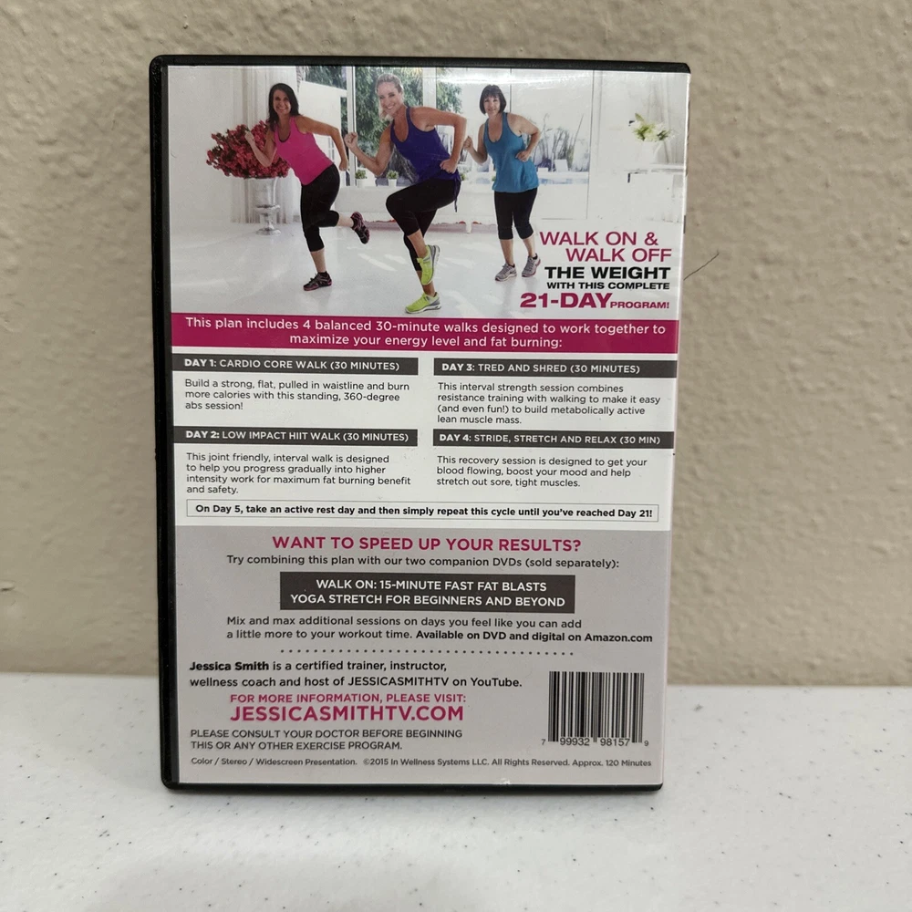 Sub-Genre:Walkinggtin13:799932981579Genre:Exercise & FitnessRegion Code:DVD: 1 (US, Canada...)Format:DVDUPC:799932981579Actor:Jessica SmithMovie/TV Title:Walk-On 21 Day Weight Loss Plan