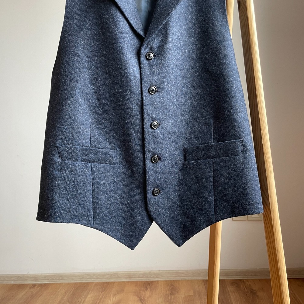 Walker Slater Edward Tweed Wool Waistcoat Excellent pre-owned condition Size UK 42R Measures: Shoulders 33 cm/ 12.9 in Pit to pit 54 cm/ 21.2 in Length in back 60 cm/ 23.6 in All items are measured laying flat