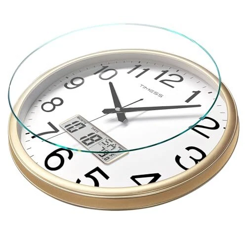 Return Policy Fast Delivery Trusted seller Wall Clock, 11 Inch Non-Ticking Silent Battery Operated Quartz Analog with LCD Display for Perpetual Calendar and F° Temperature, Ideal Modern Home, Bedroom, Kitchen, Office Décor (Gold) Product Description Perpetual Calendar & Temperature Display - Featuring large LCD screen with bold fonts for easy readability from a distance, it accurately displays real-time temperature in Fahrenheit & Month & Date & Weekly Calendar. The screen is independently powered from the clock mechanism, ensuring durability and reliable, long-lasting performance. Battery-Operated Precision Timekeeping - Featuring a high-quality quartz sweep movement, it maintains precise time, year after year. Its reliable mechanism ensures accuracy, making it an essential and trustworthy addition to any space. 2x AA carbon batteries required(not included). Easy to Read & Noise Free - This clock combines classic colors with bold, black numbers on a white background and clear 15-minute marks for visibility and style. Its smooth sweep movement ensures a quiet, tick-free operation, perfect for a peaceful work or relaxation space. Elegant Décor - Showcg a refined wood grain finish frame and a HD glass panel, it combines luxury & durability. The fade-resistant dial promises enduring elegance, rendering it a chic and low-maintenance accent for any room. Modern Design - With its contemporary and sleek design, this clock is ideal for various spaces, including bedrooms, living rooms, kitchens, dining areas, bathrooms, classrooms, and offices. Its universal appeal makes it a fantastic gift for family and friends, adding a touch of elegance and functionality to any room. Shipping Returns Payment Shipping Shipping is FREE to all addresses other than APO/PO boxes in the lower 48 states. All our stock ships from US-based warehouses. Shipped via USPS or UPS (depending on location and package weight) Unless stated otherwise, all orders will ship within 24-72 hours of your payment being processed. Check our feedback to see the great reviews of FAST shipping we offer. Returns Seller does not accept returns Payment We currently accept payment via eBay managed payments only. Once payment is cleared, we will dispatch your shipment within 1-3 business days. Please refer to the "Shipping" tab for more information regarding shipping speed to your destination.