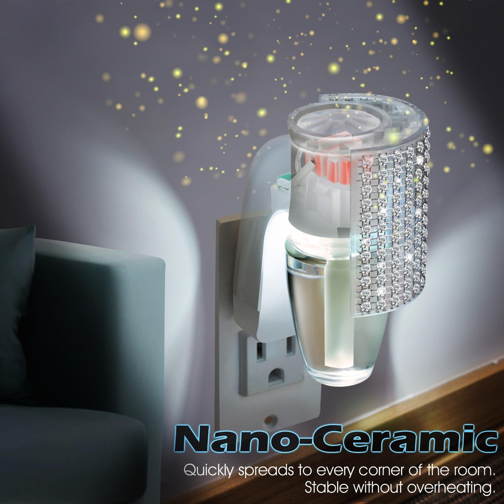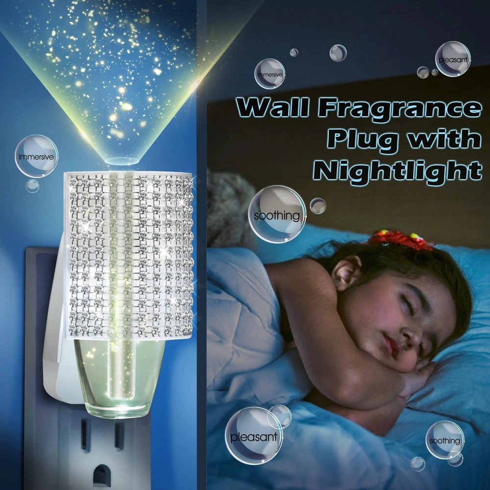 Easy to Plug In: this fragrance plug is with Bath & Body Works WallFlower fragrance refills, ensuring full compatibility so you can get the most out of your product's scent, creating a fresh and inviting atmosphere in your home Wall Fragrance Plug with Nightlight: decorated with beautiful round rhinestones, this plug in diffuser looks especially nice in bathrooms and bedrooms; It can also be applied as a night light, while emitting fragrance, allowing you to fall asleep with the fragrance, creating a pleasant and relaxing atmosphere and improving your sleep quality Always Keep It Upright: designed with a rotatable plug, it can be applied in both vertical and horizontal sockets with a quick twist of the rotating plug to ensure that the fragrance won't spill out Safe to Use: the rhinestone wall fragrance night light plug is ETL certified and meets strict safety standards, making it safer to use and ensuring your peace of mind during use; At the same time, this plug in diffuser operates efficiently at 3 watts, 120V and 60Hz, ensuring long lasting scent enjoyment while reducing energy consumption Wide Range of Uses: this wall fragrance plug works well for bedrooms, kitchens, living rooms, bathrooms, offices or anywhere else you want to be, easily removing odors and purifying the air so you can enjoy a constant fresh scent in your living space