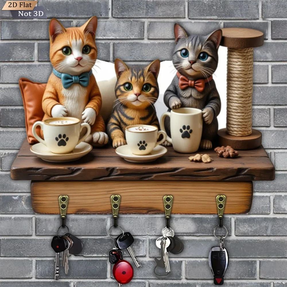 $ 15.4230cm Wall Keychain - Cat Tabby Organizer 2D 4 Hooks Entrance